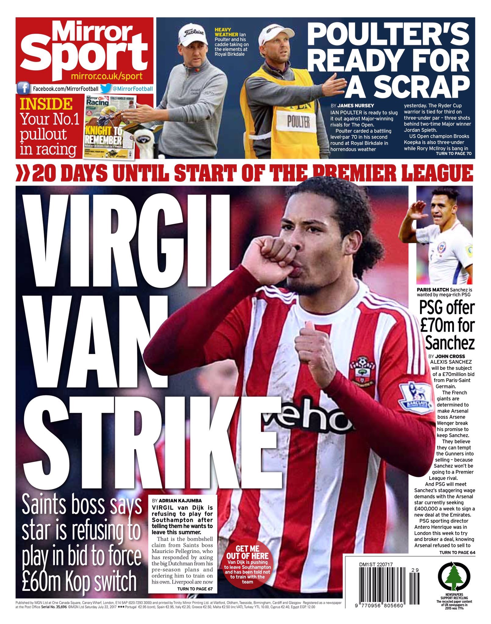А вот Ван Дейку альтренатив нет, и клуб их не ищет от слова совсем. Об этом пишет и местная мерсисайдская пресса, и лондонская (Таймс, Телеграф). С одной стороны, это укрепляет позицию Сотона, с другой - Ван Дейк, опять же, по информации из прессы, хочет именно на Энфилд, что сужает боссам Святых пространство для манёвра.